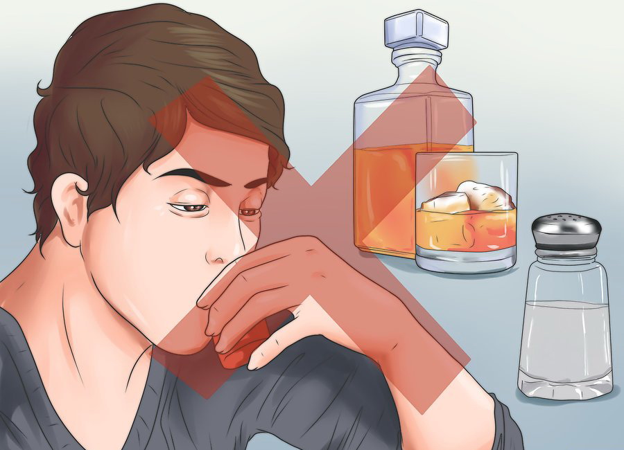 Шаг 8. Рекомендуется поменять пищевые предпочтения – не стоит на ночь есть много соленой пищи или злоупотреблять алкоголем. Соль в любую пищу не стоит добавлять в большом количестве. Количество употребляемого алкоголя требуется свести к минимуму.