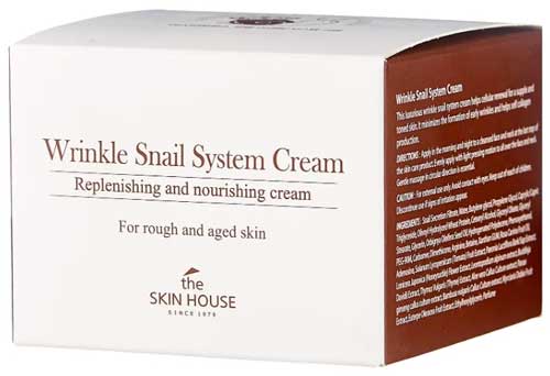 Третью позицию занимает крем The Skin House Wrinkle Snail System. Это корейский бренд, у которого есть своя клиника и сеть SPA-салонов. Помимо производства уходовой косметики они также занимаются производством экстракта алоэ вера. Для этих целей в аренде The Skin House находятся огромные плантации в Южной Африке, на которых выращивается это растение. Вся продукция бренда сертифицирована.