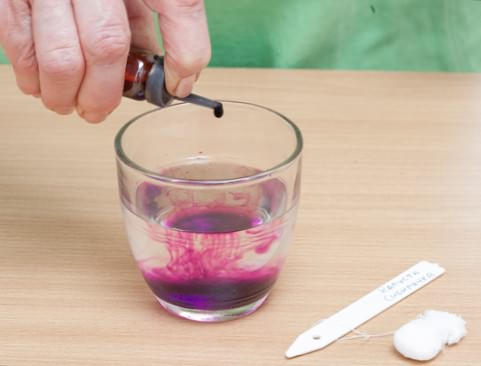 - Подготавливается небольшая посуда, в которую помещают щепотку марганцовки.