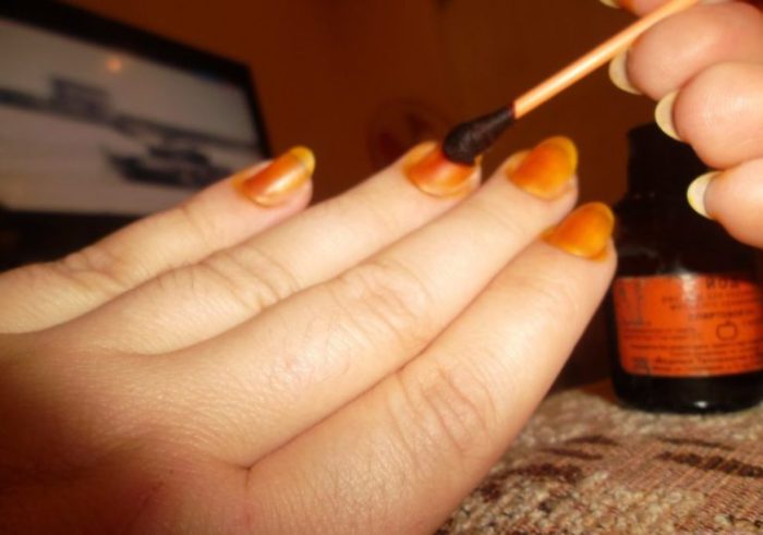 Перед обработкой ногтей и кожи йодом важно высушить стопы, удалить отросшие части пластины, обработать их поверхность с помощью пилочки. Во избежание раздражения йод нужно наносить на сухую кожу