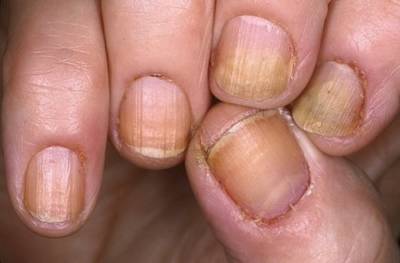 Пожалуй, это самое распространенное заболевание ногтей, с которым сталкивается около 3 человек из 10. Грибок очень опасен для ногтевой пластины и кожи стоп и рук, им легко заразиться, однако вылечить очень сложно. Как правило, заражение происходит в общественных местах (бассейн, сауна, баня), а также при несоблюдении правил личной гигиены и при общении с человеком, уже зараженным грибком ногтей. Подробнее о микозе ногтей можно узнать тут.