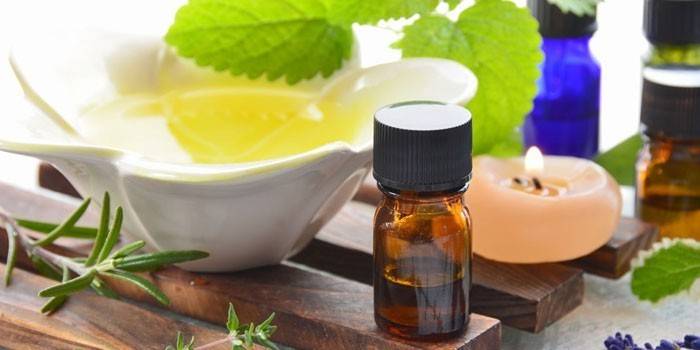 - мазь с эфирами лекарственных трав приятно пахнет и проявляет антимикробные свойства, в составе: по ложке кокосового масла и сока алоэ, по капле масла мяты или душицы, по паре капель – эфира лаванды, чайного дерева, эвкалипта. Смесь втирают в проблемный участок, предварительно продезинфицировав его. Кратность: пара-тройка раз в неделю;