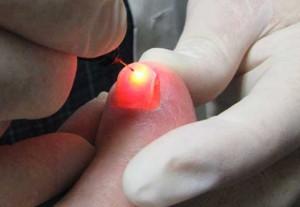 Удаление вросшего ногтя радиоволновым методом происходит с помощью специальных аппаратов. Данный метод характерен высокой точностью и меньшим повреждением соседних тканей. Рецидивы возникают значительно реже.