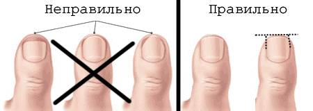Ноготь на ноге ни в коем разе нельзя чрезмерно закруглять, да и вырезать достаточно глубоко не стоит, так как именно это может стать причиной врастания ногтевой пластины в эпидермис. Понятно, что придавая ноготку такую форму, мы желаем выглядеть эстетично, но лучше пожертвовать этим и оставить его квадратным, а краешки аккуратно подпилить специальным инструментом.