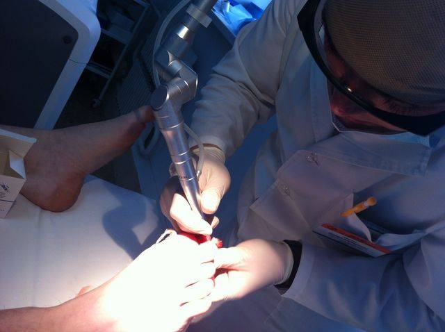 Рис. 3. Лазером проводят бескровное удаление диного мяса при вросшем ногте