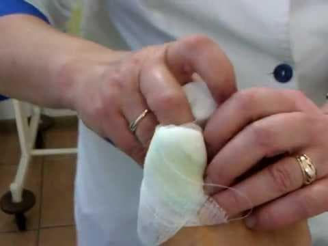 - Завершающий. Проводится сканирование поверхностей, окружающих вросший ноготь. Подчищается гной, формируются края оставшейся ногтевой пластинки. Накладывается повязка.