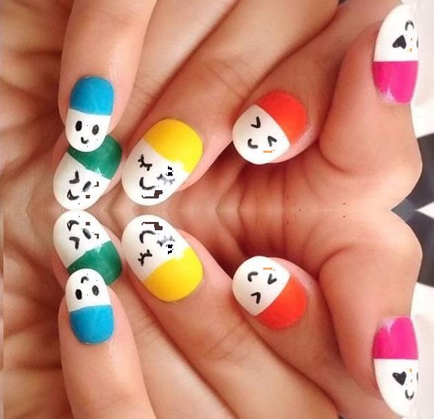 Технология оригинального маникюра заключается в простых манипуляциях, доступных даже неопытным мастерам. Начинается она с покраски каждого ногтя в свой цвет. Причем можно использовать обычные лаки или гелевые. Все зависит от пожеланий и возможностей прекрасной особы. Затем следует хорошенько просушить ногти под лампой или же дождаться высыхания естественным путем. После этого необходимо отделить при помощи полоски скотча или специального трафарета кончик ногтя и закрасить его лаком белого цвета. Также его хорошенько просушить и, взяв в руки тонкую кисть и макнув ее в черный лак, нанести различные мордочки на каждый ноготь. В завершение покрыть ногтевую пластину каждого пальца прозрачным лаком и полностью высушить готовый маникюр.