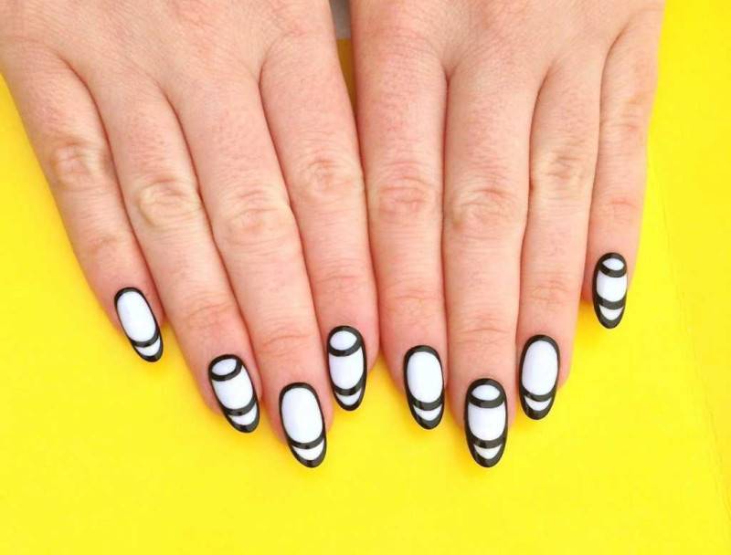 Декоративные элементы в маникюре негативное пространство рисуются поверх ображённого ногтя