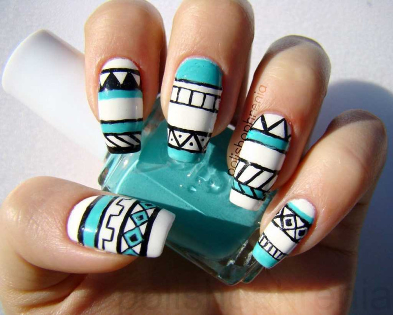 Если вы не уверены в идеальности линий, можете воспользоваться специальными трафаретами. Как только рисунок высохнет, ноготь покрывается слоем закрепителя, который поможет сохранить маникюр дольше.