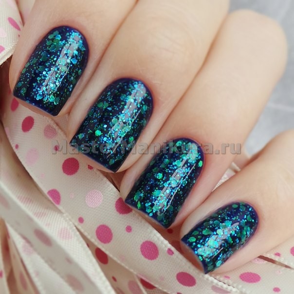 Плоская кисточка для маникюра поможет при нанесении блесток. Первый шаг такого маникюра – нанесение базового лака. Не дожидаясь высыхания, распыляют блестки по технике «градиент» от основания до кончика ногтя. Сверху закрепляют бесцветным лаком.