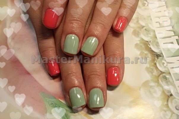 - Комплиментарный — сочетаем в одном маникюре контрастные цвета