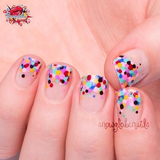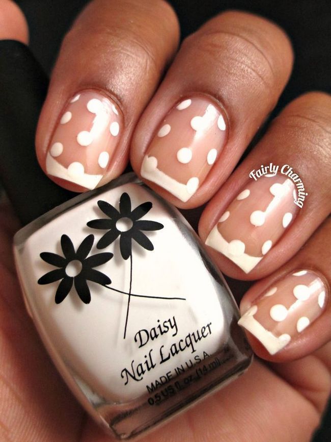 Этот яркий и позитивный дизайн будет по силам всем начинающим. Горошинки легко сделать с помощью инструмента под название дотс (он выглядит, как ручка с круглым наконечником) или невидимки для волос.