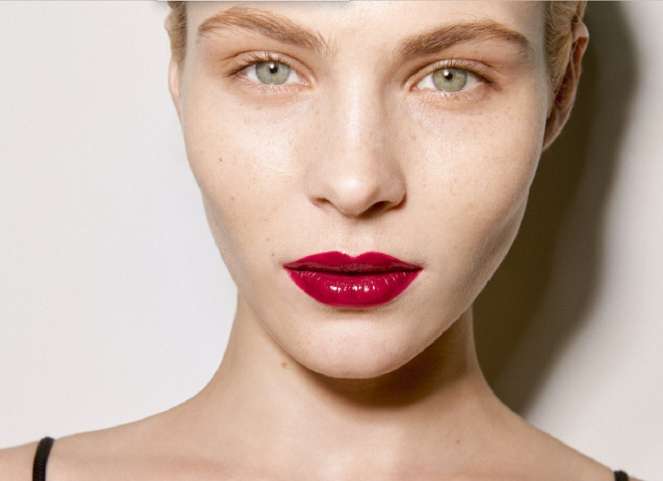 Если акценты переносят на губы, то достаточно яркой помады. Цвет должен быть не обязательно красным. Свежо смотрятся виды с металлическим блеском.