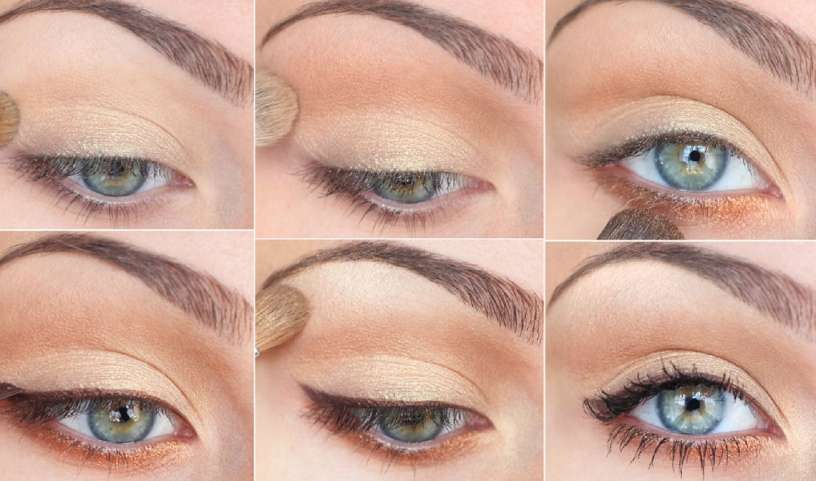 Пример нанесения дневного макияжа для голубых глаз:
