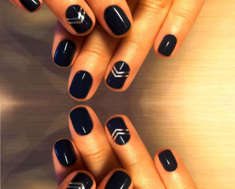 - Финальный штрих – черный лак, который должен расположиться в нижней половине ногтя по диагонали.