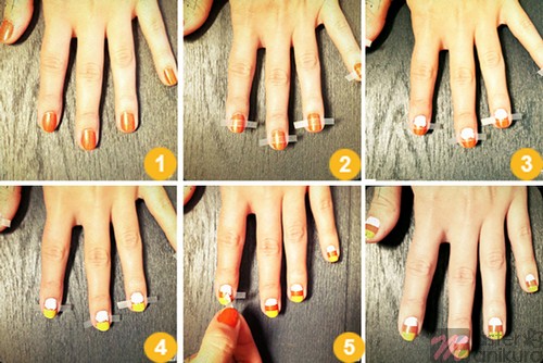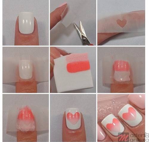 - покройте ногти лаком, как показано на схеме; нанесите 2 или 3 слоя, если это необходимо;