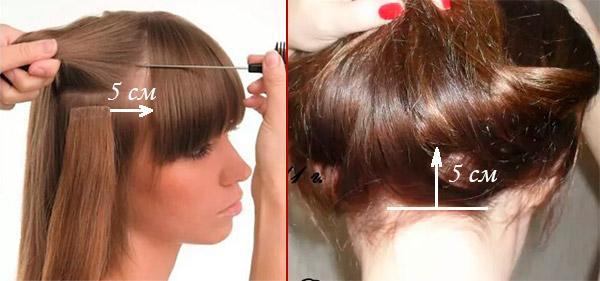 Нужно отступить снизу и сбоку от линии роста волос 5 сантиметров. Чтобы не искать линейку, отмерить расстояние можно одной стандартной или двумя микролентами. Если волосы негустые, лучше отступить немного больше.