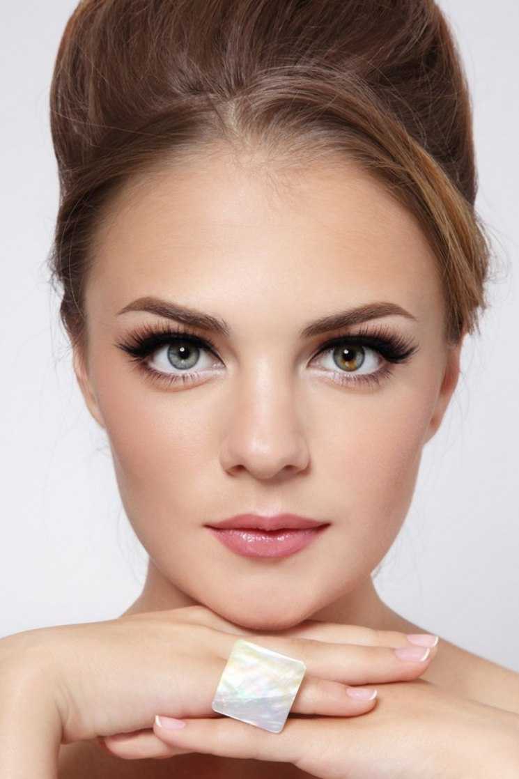 Для макияжа глаз используются тени от коричневого до ванильного оттенков, исключительно матовых текстур. Это только в том случае, если вы хотите выделить глаза. Тушь лучше выбрать коричневую.