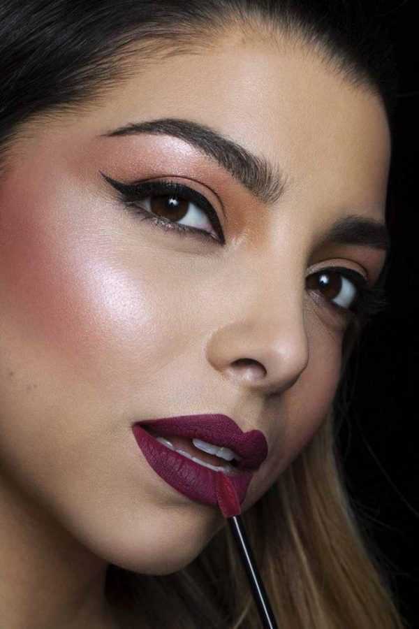 Допускается также нанесение ярких оттенков. При этом необходимо помнить, что если акцентируются губы, макияж глаз должен быть максимально сдержанным.