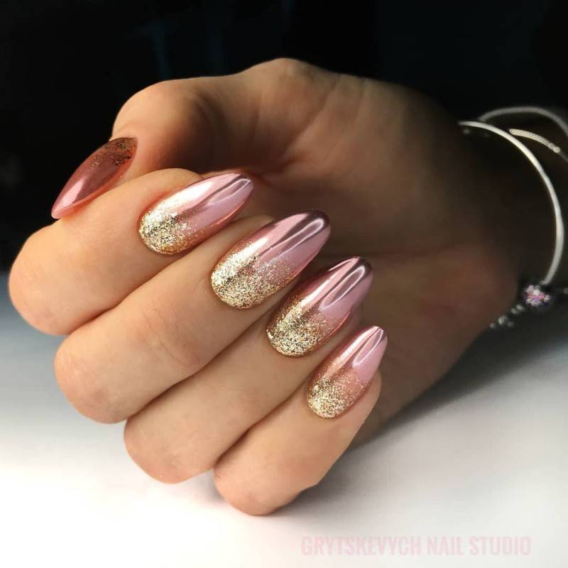 Втирку можно использовать, как элемент украшения части ногтевой пластины, либо выделять поочередно. Мастера предлагают массу вариантов, какой вид маникюра сделать на ту или иную форму ногтей, поэтому женщинам будут доступны разные идеи на каждый день.