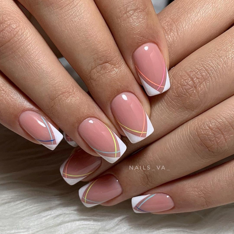 Разноцветный матовый френч с яркими «улыбками», французский маникюр с неоновыми «улыбками», а также красочный летний френч с акцентом на отдельных ноготках – это горячие тренды французского маникюра на лето 2024.