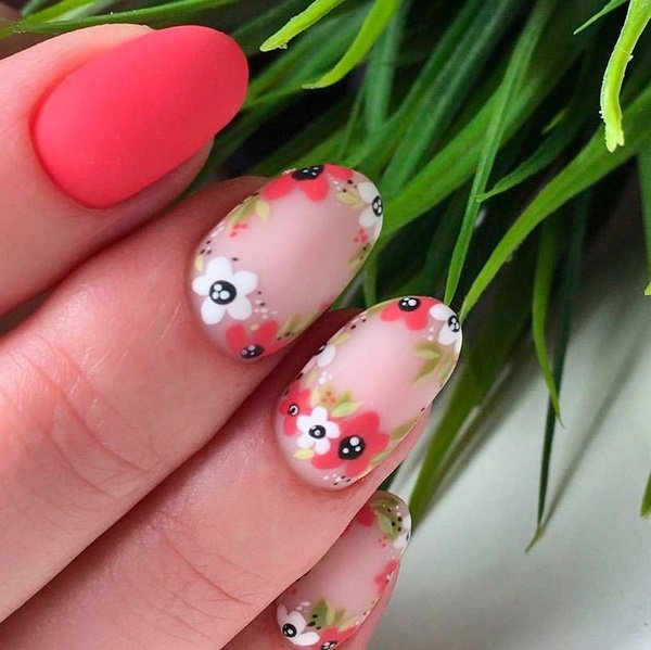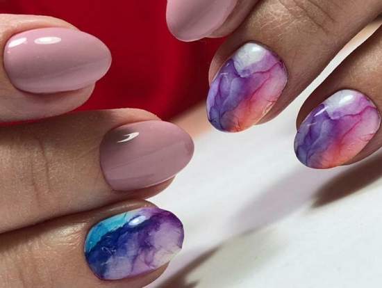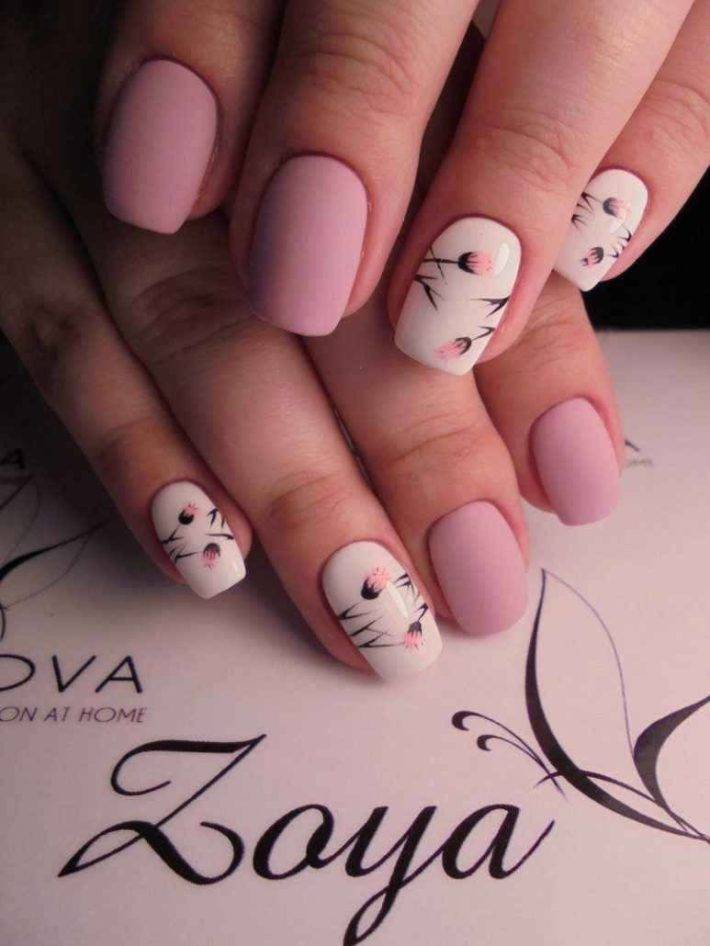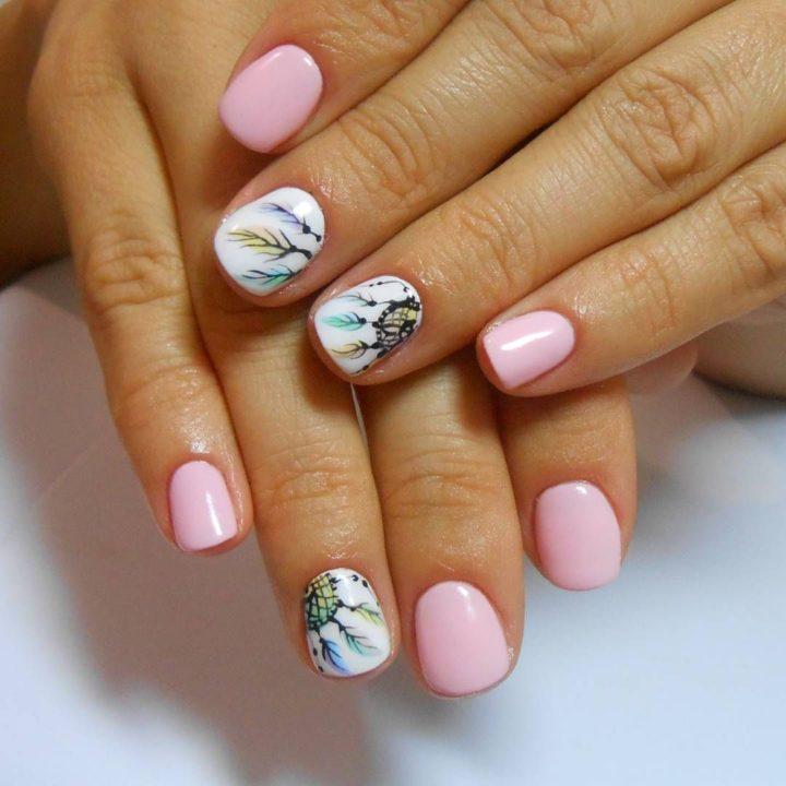 Мило будет смотреться летний нежный маникюр в пастельной гамме, выполненный в стиле лунного и омбре дизайна, яркими мазками кистью и утонченными цветочными узорами.