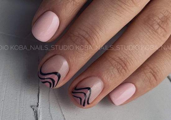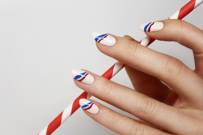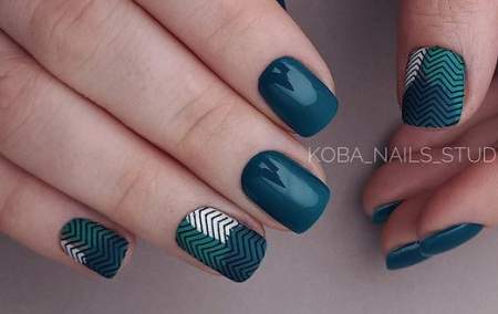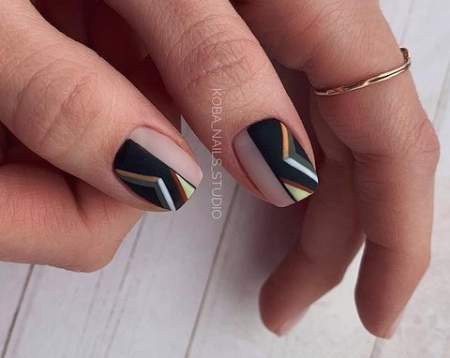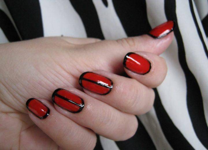 Дизайн полосок выбирают на усмотрение нейл-мастера или хозяйки: