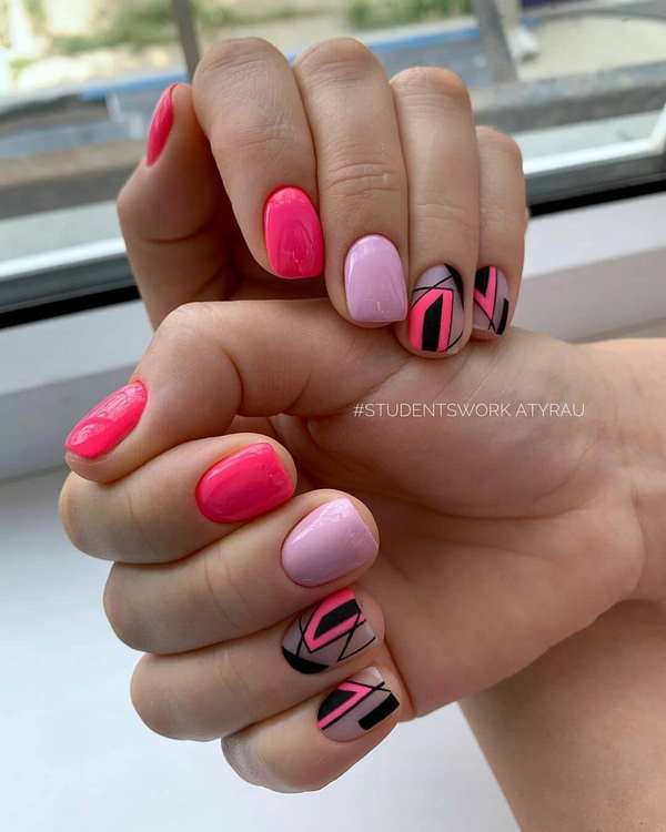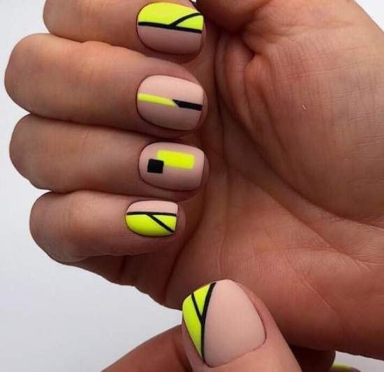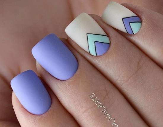 Модные короткие ноготки не утратили своей трендовости, и будут представлены с новым летним нейл-арт дизайном, что поразит всех модниц этим летом. Используйте разноцветные покрытия на каждом отдельном ноготке либо лаконичный геометрический и абстрактный маникюр на лето с матовым покрытием.