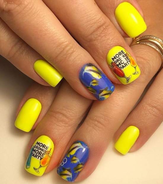Яркие картинки на ноготках привлекают к себе повышенное внимание окружающих, так что такой модный летний маникюр 2021 года подойдет не всем. Беззаботные старшеклассницы, студентки и девушки, чья профессия не обязывает выбирать преимущественно бежевый маникюр, могут смело позволить себе превратить ручки в объект искусства