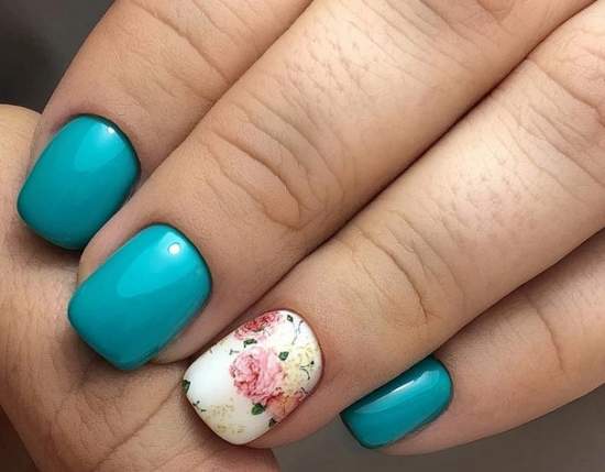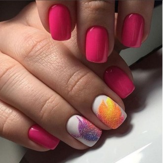 Сделать модный летний маникюр на вечер станет проще простого, если в вашем арсенале будут присутствовать блестки: глиттер, фольга, пайетки. С их помощью можно создать превосходный летний маникюр с акцентом, покрыв один-два ноготка блестящим декором полностью.
