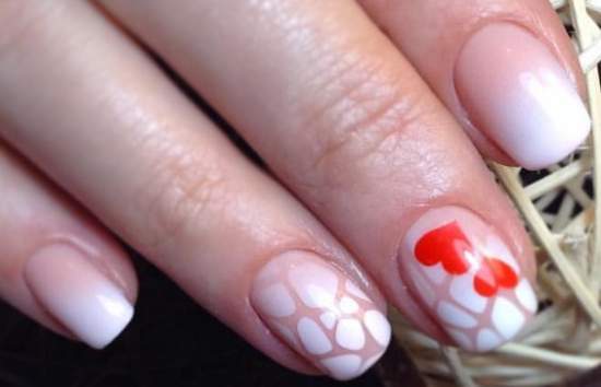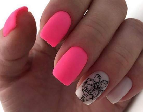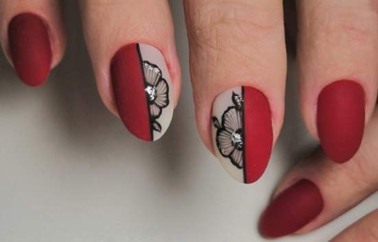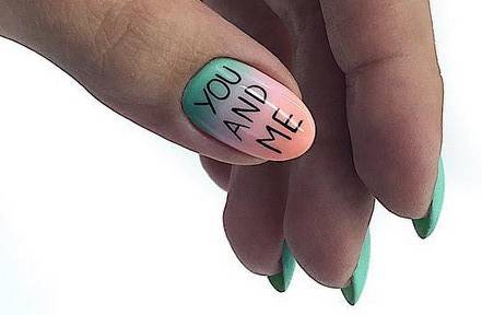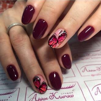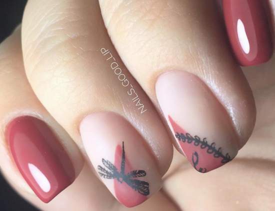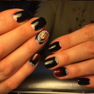 Удачное сочетание цвета и дизайна. Идея не новая, но по сей день популярная как среди любительниц маникюра, так и среди мастеров.
