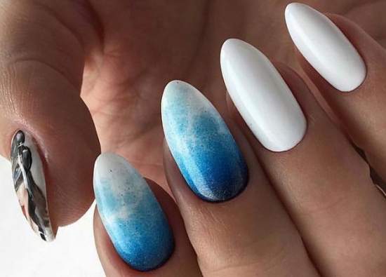 Светло-голубой маникюр будет прекрасным дополнением летнего образа, он может быть в монотонном исполнении, а может быть украшен рисунком, блестками, фольгой, полосками и другими элементами декора в 2020 году.