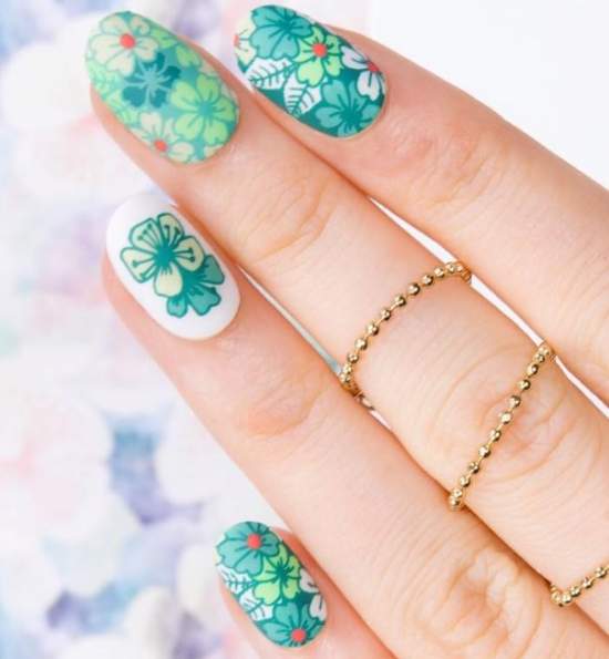 Лето 2021 — это период зеленого цвета. Больше всего здесь будет ценится изумрудный, который отличается богатством и насыщенностью цвета. Это лучший вариант маникюра, который сможет подойти к белой и темной коже.