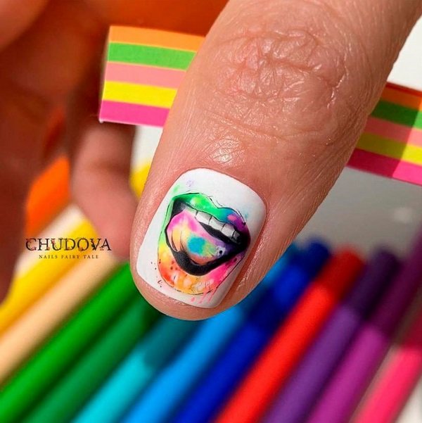 Популярный тренд – рисунки в стиле поп-арт. При наличии художественных навыков можно создать неповторимые шедевры на ногтях