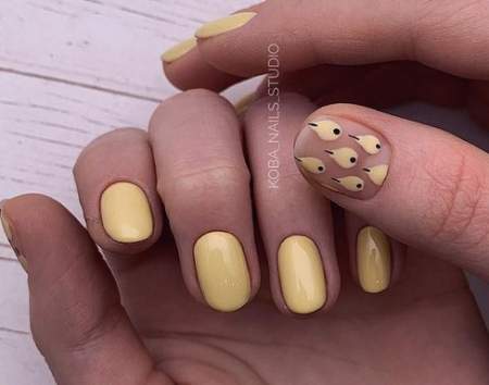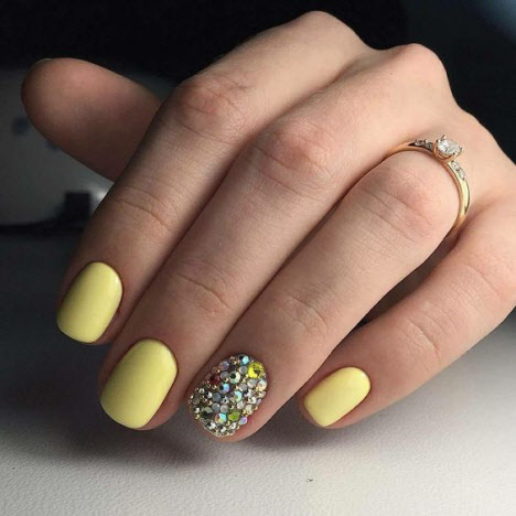 Этот красивый летний цвет сделает ваш маникюр по настоящему летним и таким красивым. Желтый маникюр сочетается и с камнями, и с блестками, и с камифубуки, и с втиркой и другими видами дизайна ногтей в 2020 году.