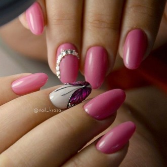 Самая популярная форма – это овальная. Она подходит к разным пальцам и к разному типу ногтевой пластины. Она может присутствовать на любой длине ногтя, где всегда будет смотреться идеально. На нее легко подбирать совершенно любой дизайн, от простого, до мегасложного.