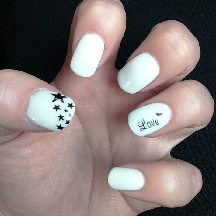 Здесь также могут присутствовать звездочки разнообразной формы и цвета и конечно же размера, что немало важно. В продаже есть очень красивые наклейки, которые вместо рисунка смогут украсить ногтевую пластину