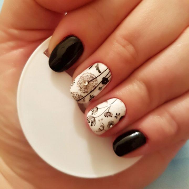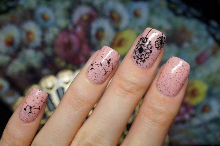 Особенно летом 2021 будут ценится простые одуванчики. Они выполняются в едином или множественном числе, где каждый цветок сможет украшать свою часть ноготка. Больше всего пользуется популярностью черно-белый рисунок на пастельном тоне.
