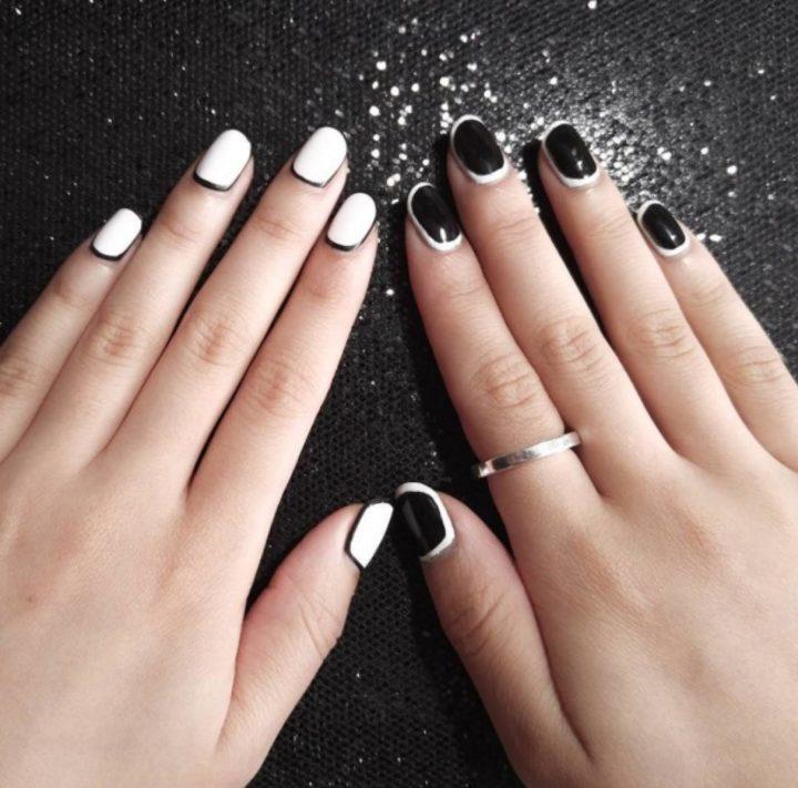 Обычно для создания рамки используется отличный от основного покрытия цвет, что весьма важно. Ведь именно в таком случае маникюр будет выглядеть представительно, броско и креативно