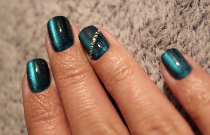 Втирка на длинных ногтях смотрится очень эффектно. Но стразы абсолютно неуместны.