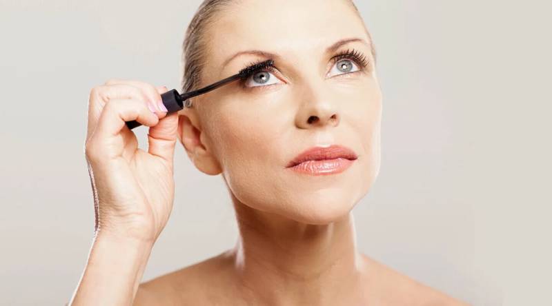 - Возрастной макияж не допускает использование объемной туши для ресниц, дамам в возрасте предпочтительнее использовать самую обычную тушь.