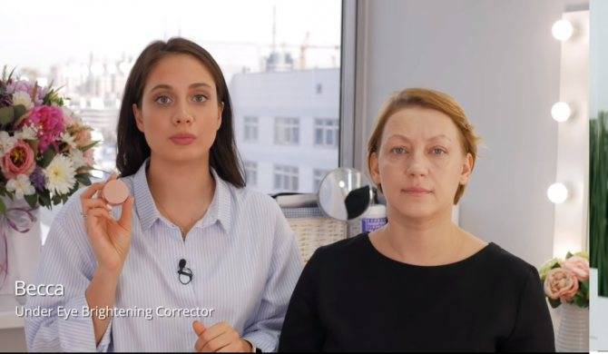 На зону вокруг глаз необходимо нанести корректор. Визажисты советуют использовать продукт от Becca – Under Eye Brightening Corrector. Это средство не подчеркивает морщинки, эффективно борется с темными кругами под глазами и придает нежному участку дермы отдохнувший вид.