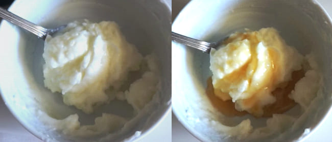 - Смешиваем его с тремя столовыми ложками масла, подогреваем смесь до приятной температуры.