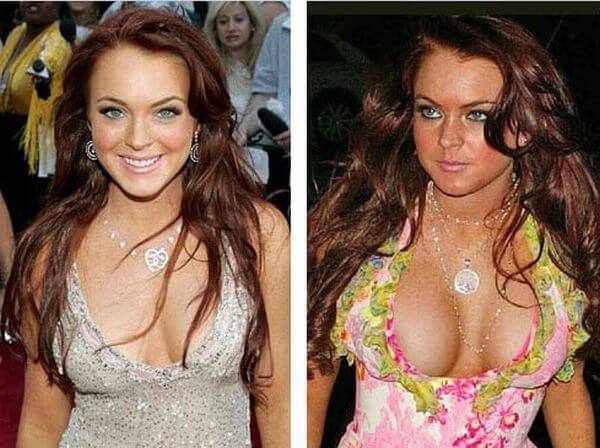 Молодая Линдси Лохан рано стала употреблять алкоголь и запрещённые вещества, и уже в 2005 году впервые попала в больницу из-за передозировки. Папарацци не раз ловили молодую актрису с поличным — на снимках 18-летняя Линдси выглядела болезненно худой и значительно старше своих лет.