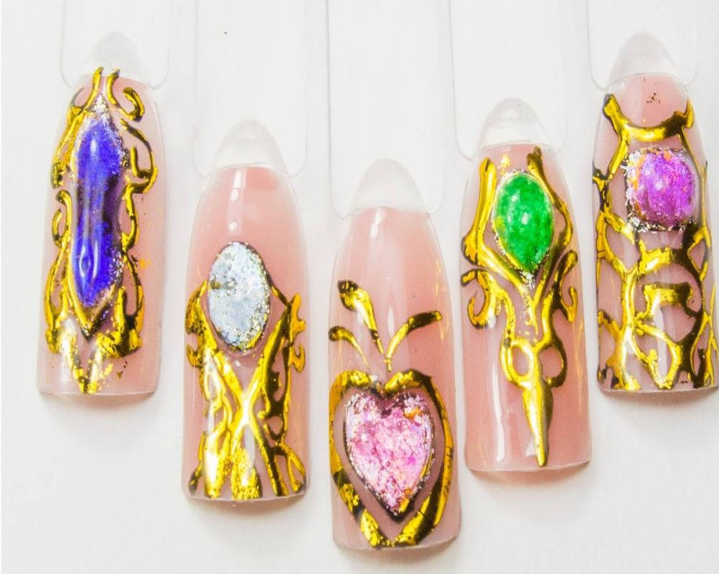 Дизайн ногтей литьё и жидкие камни