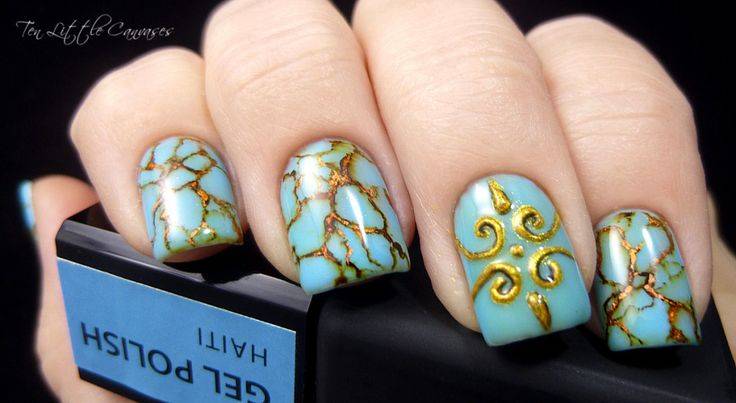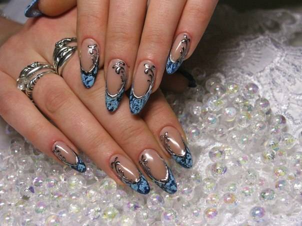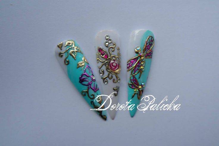 Очень красивый маникюр. Замечу, что очень часто литьё на ногтях делают одновременно с . Это родственные виды дизайна и их часто можно увидеть вместе.