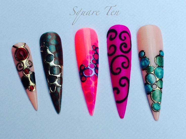 С помощью техники литья на ногтях с помощью переводной фольги, относительно легко можно создавать расписные объёмные узоры на ногтях. Смотрите фото примеры дизайна а так же видео с пошаговыми инструкциями для начинающих.