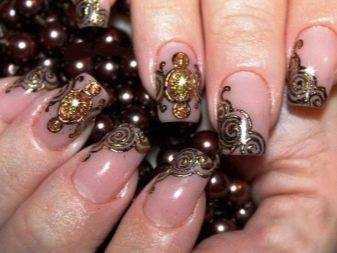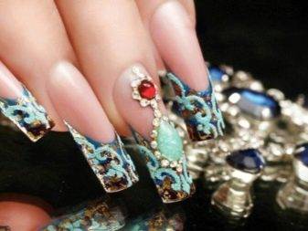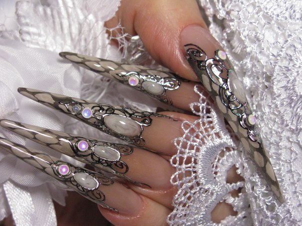 Дамы же, любящие разнообразие в украшении себя, не боящиеся экспериментов с внешностью (а порой смело на них идущие) скажут своё решительное «да» и опять-таки будут правы – ведь именно на них такой дизайн не будет ни чрезмерным, ни пошлым, ни пресловутым «дорого-богатым». Наоборот, он будет органичным дополнением образа, пикантной деталью, привлекающей взгляд к рукам и демонстрирующей их в выгодном свете.