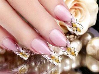 Изысканный маникюр с помощью металлизированной фольги не вполне подходит для повседневной носки, а вот в качестве праздничного нейл-арта на вечеринке или свадьбе он более чем уместен, главное – не перестараться с элементами декора. Следует учесть, что литье недолговечно, продержится оно недели две, не больше. Рассмотрим наиболее популярные виды декора ногтей.