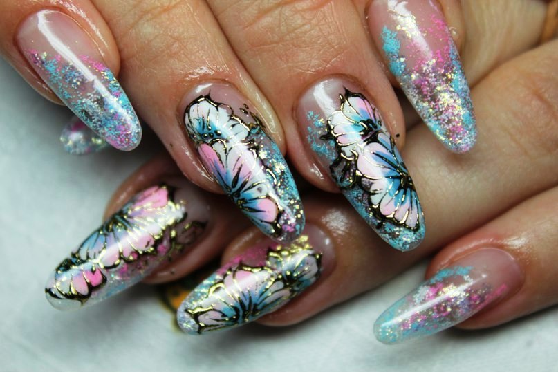 Техника литья включает в себя множество вариантов дизайна ногтей. Можно рисовать разнообразные узоры, такие как цветы, завитки, ягоды, ракушки, бабочки, создавать оригинальные витражные и мозаичные орнаменты – никаких ограничений здесь нет.